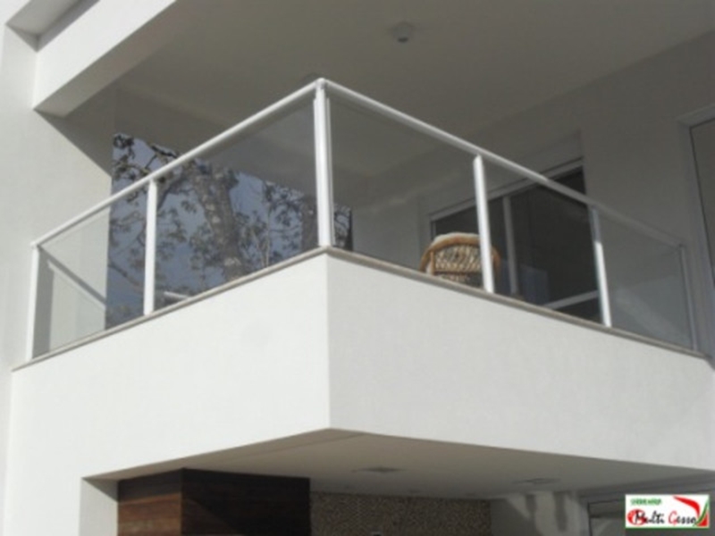 Cod.230 Guarda Corpo de Alumínio branco e vidro Temperado